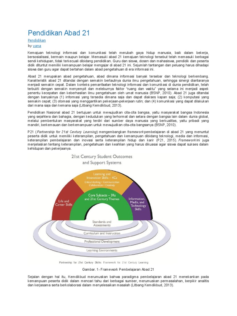 View flipping ebook version of PANDUAN PELAKSANAAN PENDIDIKAN ABAD KE 21 published by juhaidahwahab on 2020-12-26. Agar guru memahami bagaimana melaksanakan pembelajaran sesuai tuntutan Abad 21 maka Direktorat Pembinaan SMA menyusun naskah Panduan Implementasi Kecakapan Abad 21 Kurikulum 2013 di SMA yang dapat dijadikan sebagai contoh rujukan. Dalam proses menyediakan warganegara Malaysia dengan pendidikan yang lengkap bagi mengisi dua keperluan utama iaitu keperluan individu dan keperluan negara kurikulum perlu dirancang dan diurus dengan teliti.